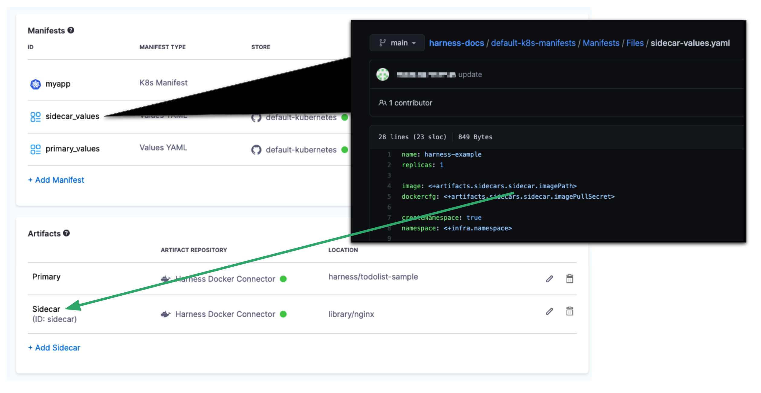Now that you have your sidecar manifests set up, you can add them to Harness.